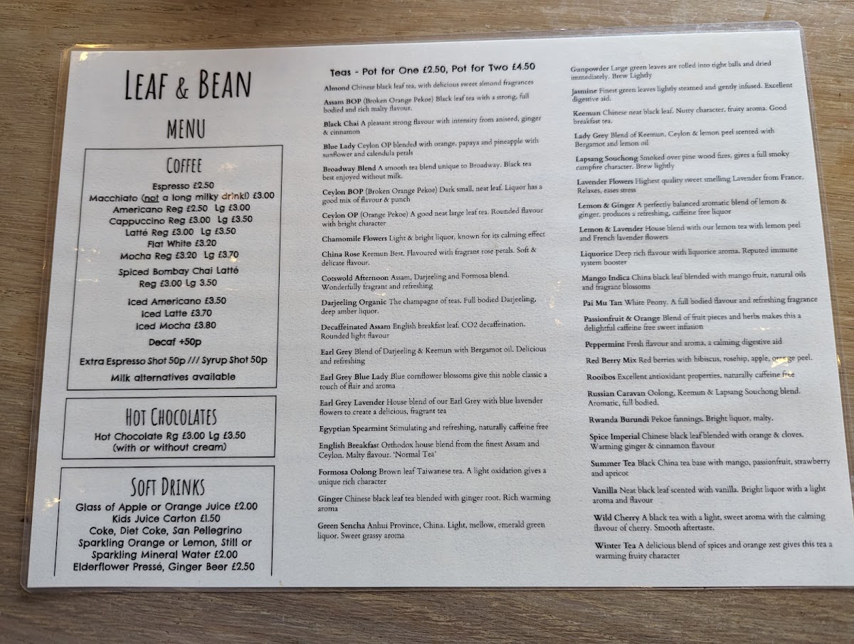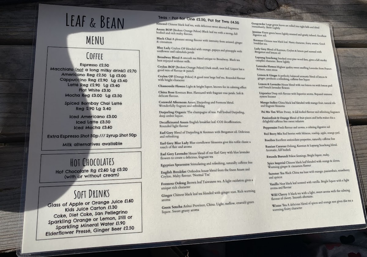 Service is friendly and attentive, and portion sizes are generous for the price-making it not only a culinary highlight in Broadway but also great value. For anyone visiting the area or seeking a locally rooted café experience, the Leaf & Bean Menu is a must-try that showcases both the heart and flavor of the Cotswolds.